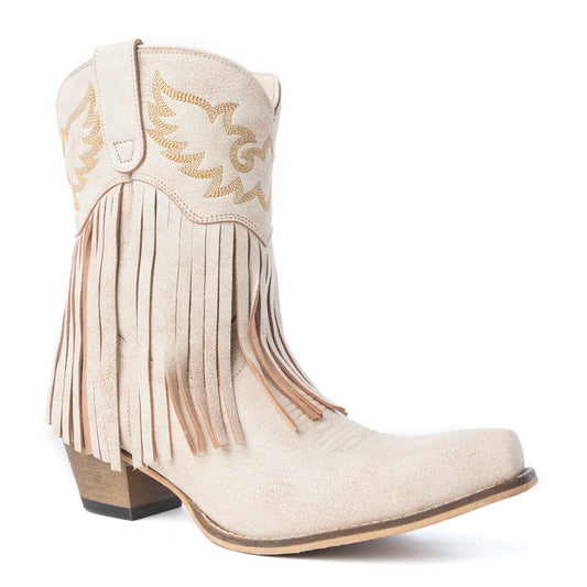 Myra Cimarron Belle Fringed Handtooled Leather Booties in Wild Tan