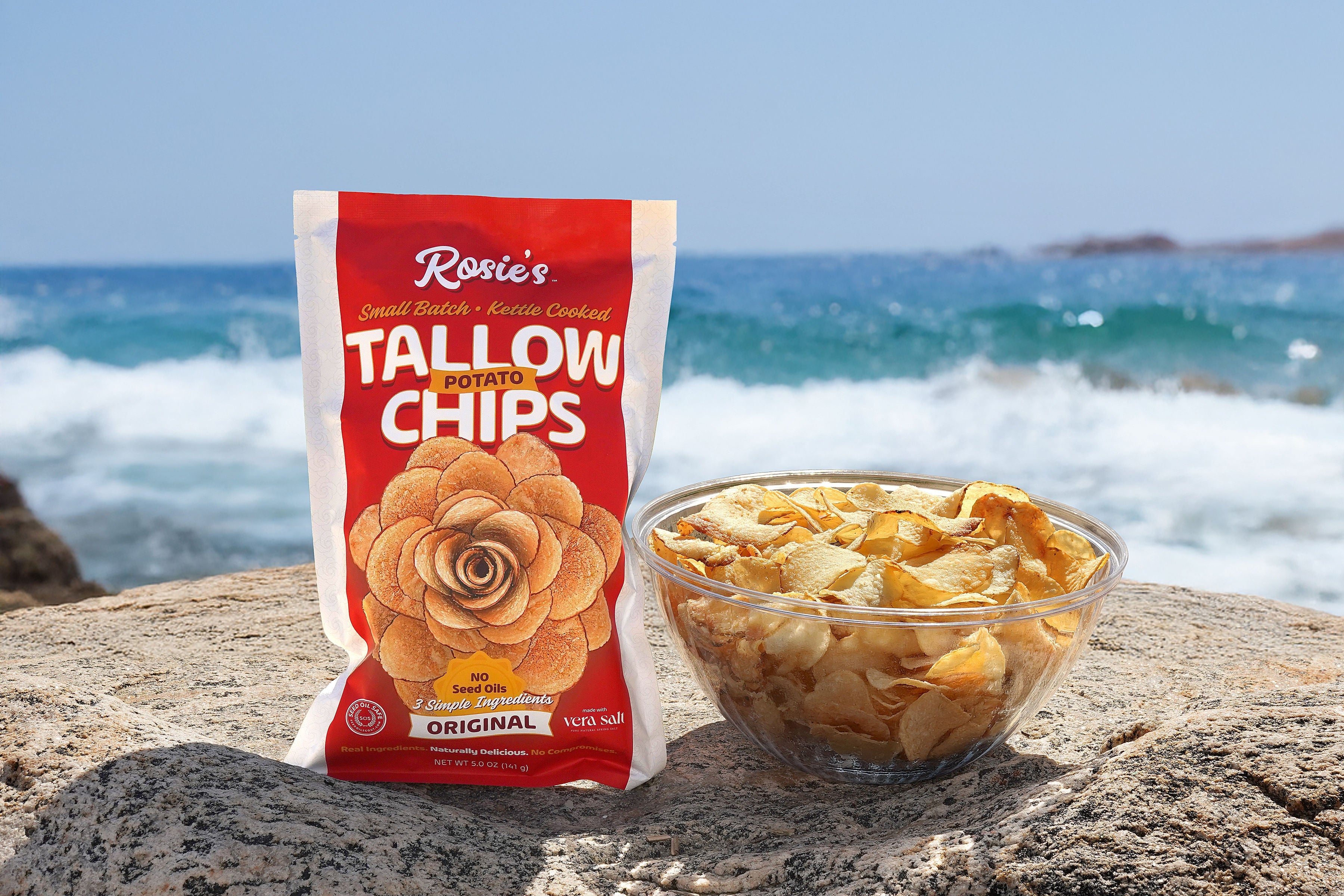 Kettle cooked in small batches with only three ingredients: non-GMO potatoes, 100% grass-fed beef tallow, and microplastic free sea salt from an ancient Spanish spring (Vera Salt). 🥔 🥩 🧂