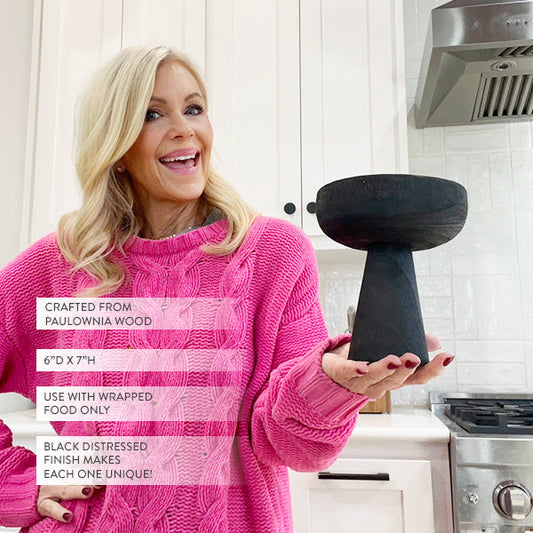 Modern Black Elevated Paulownia Wood Bowl Riser
