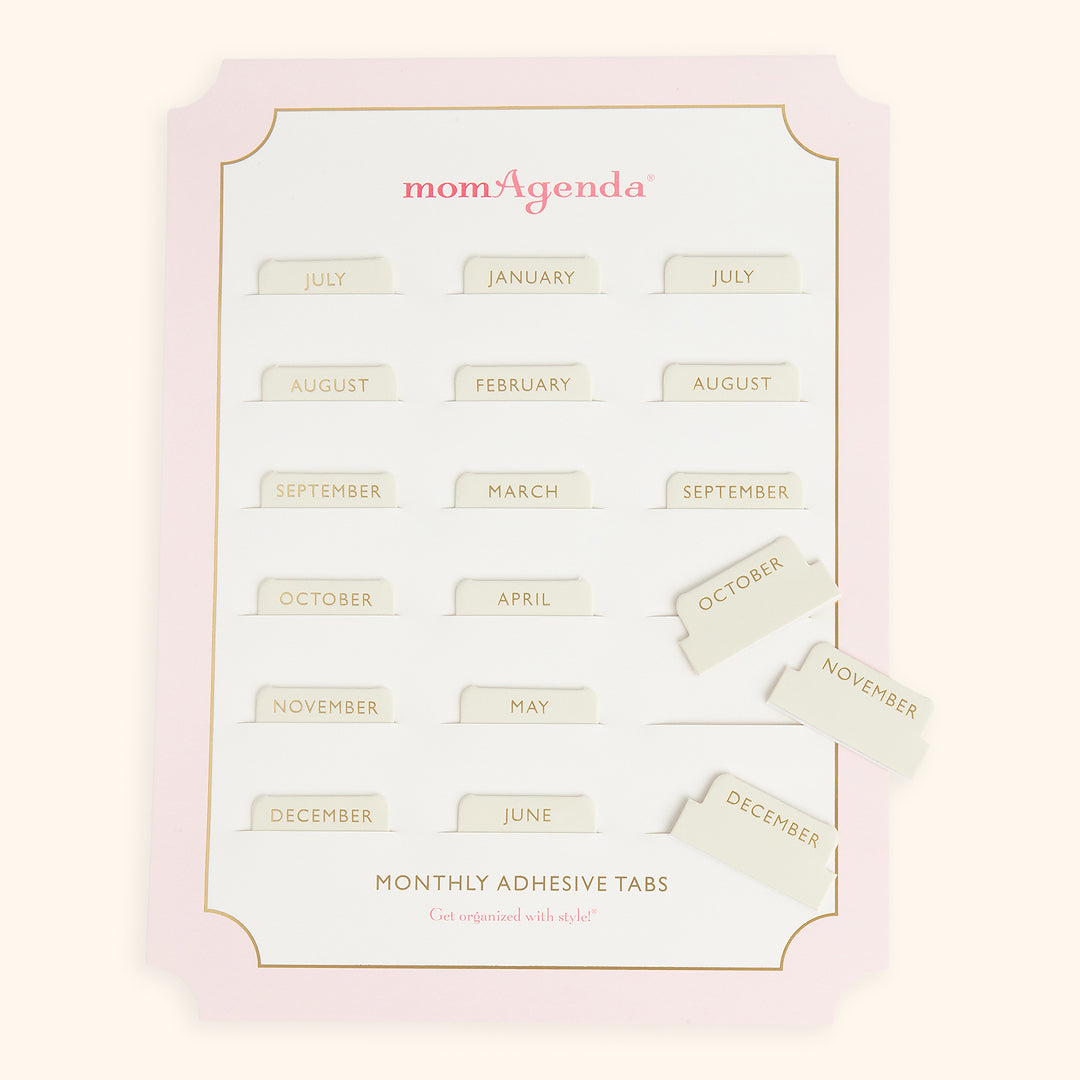 Our monthly Adhesive Tabs are an essential complement to our day planners. Durable, elegant, and easy to use, simply peel off adhesive and apply to make your planner even more organized. Each set includes 18 tabs, running from July through December, making your planner easier to navigate each day.