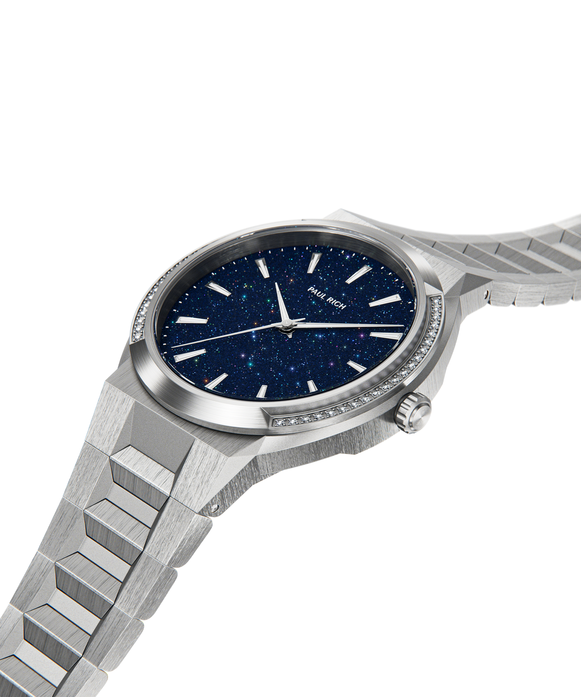 Additionally, it features slender, luminous hands and markers. Perfectly crafted on the side of every case is the crown with the special sand pull rounded texture. At the heart of this model is a Swiss-made Ronda 763 movement, while the caseback is stamped with the our graphic depiction of the galaxy.